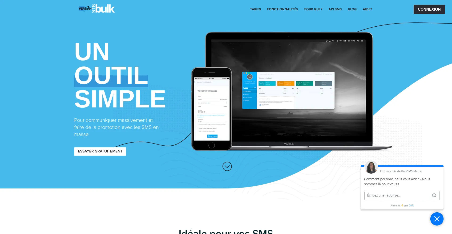 Bulksms.ma propose une solution d'envoi de SMS professionnelle. Service d'envoi de SMS pro complet et fiable pour vos campagnes de SMS marketing.