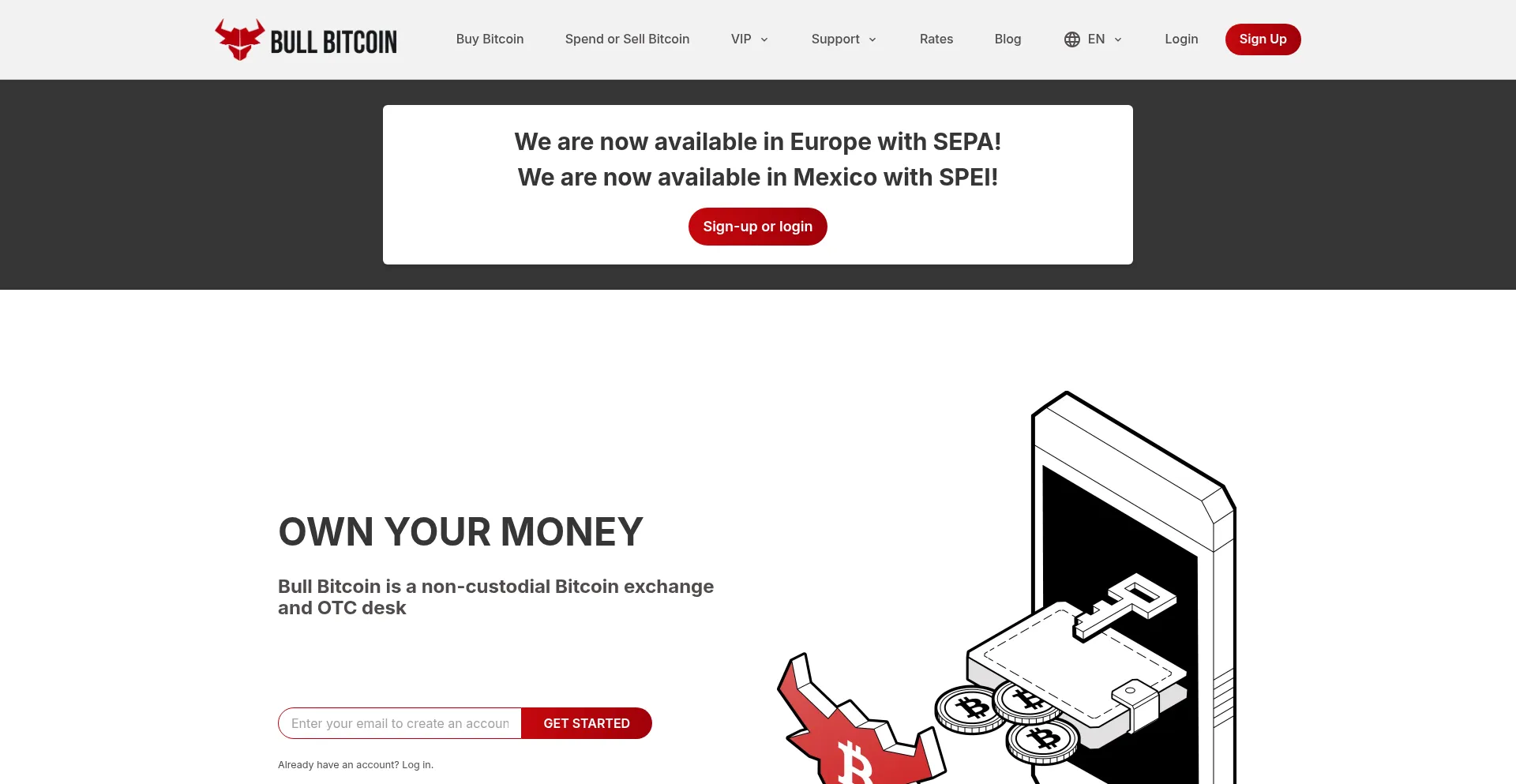 Bull Bitcoin is a non-custodial Bitcoin exchange. Our mission is to empower our customers to take back control over their money.