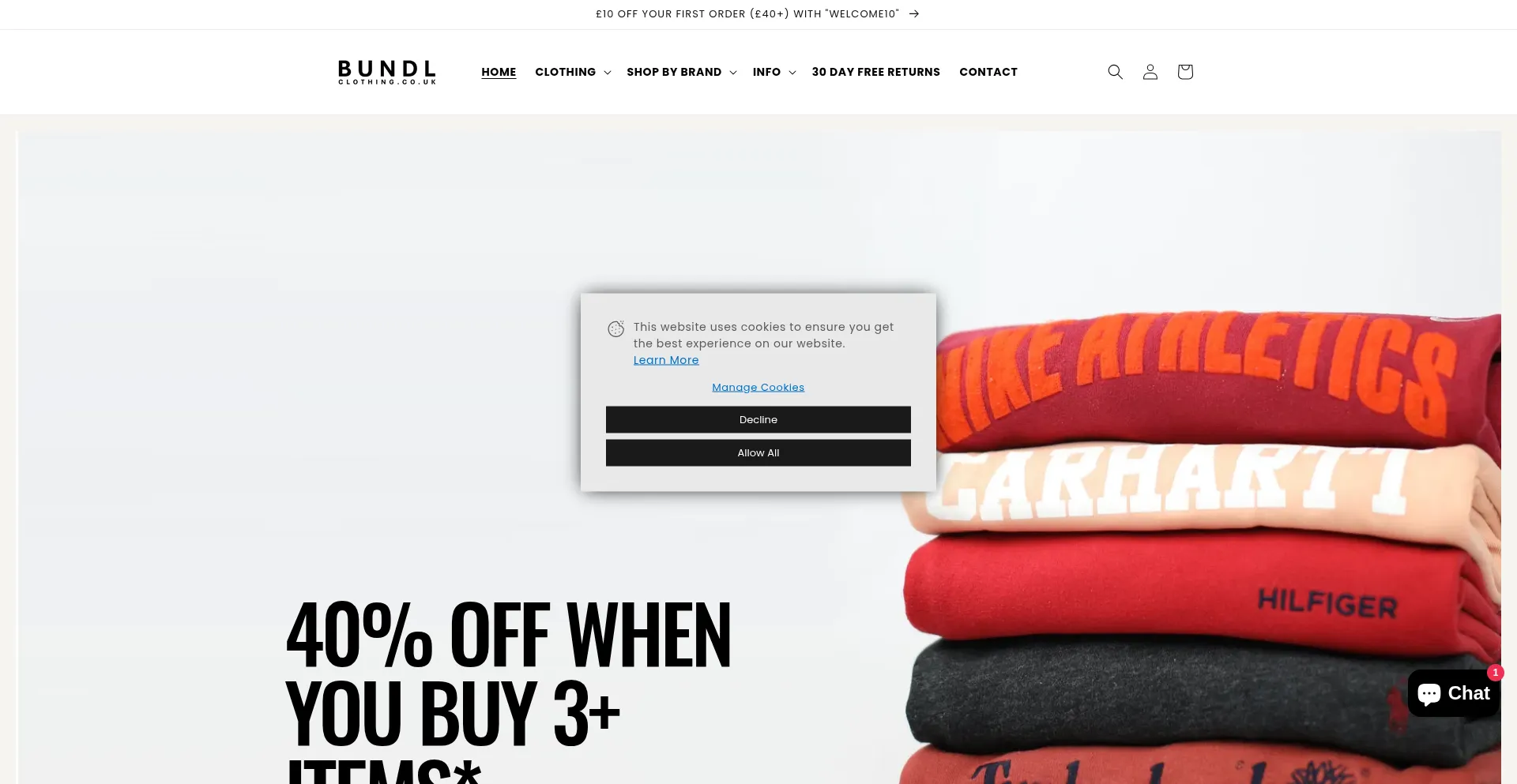 该网站实现符合GDPR或CCPA等隐私法规的cookie同意机制。这表明 bundlclothing.co.uk 遵守数据保护标准并为用户提供对个人数据收集实践的控制。