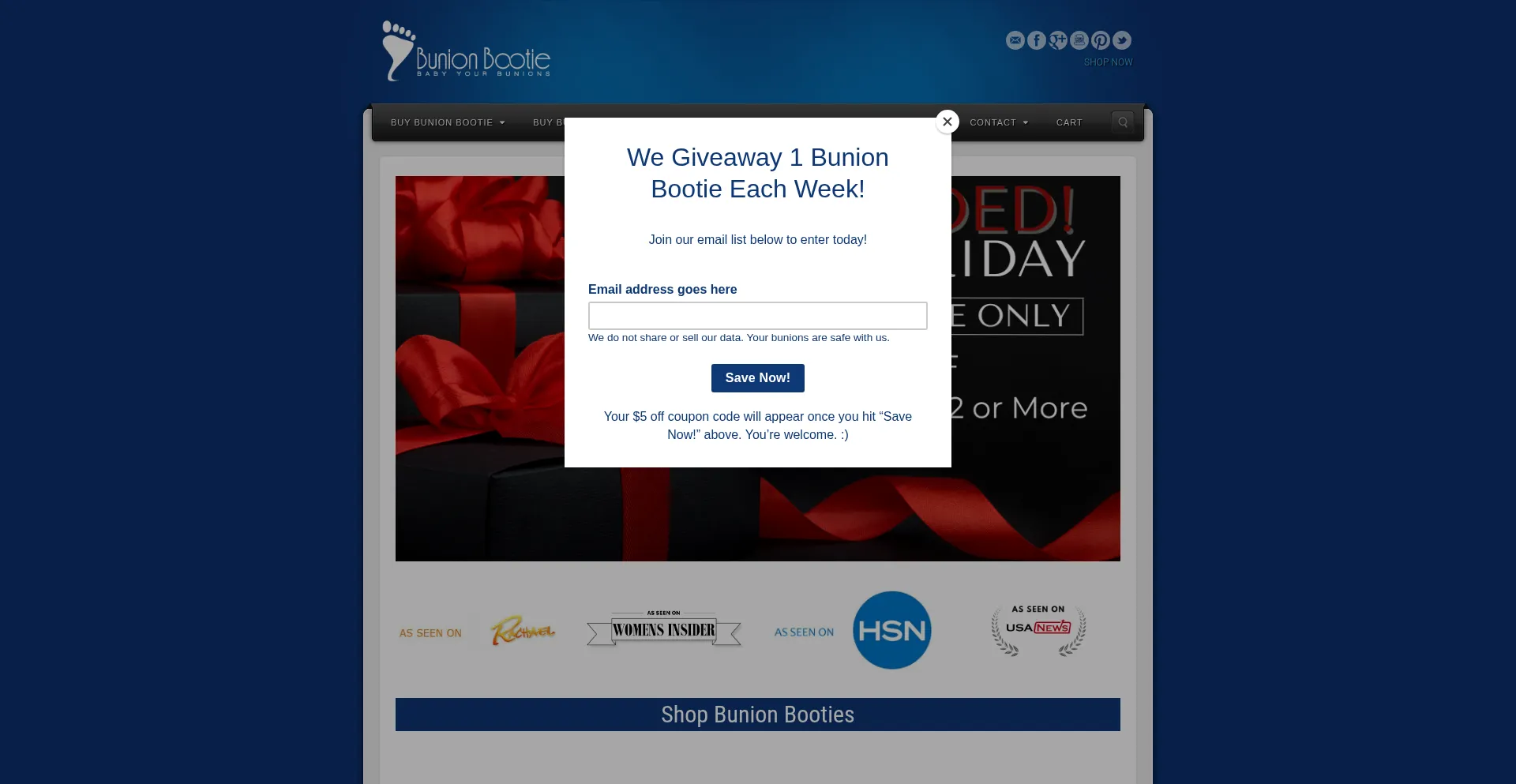 帮助保护他人,快在社交媒体上分享此页面吧!知道bunionbootie.com的人越多,骗子就越难得逞。 通过在社交媒体上分享此页面,帮助更多人发现可靠的bunionbootie.com吧!