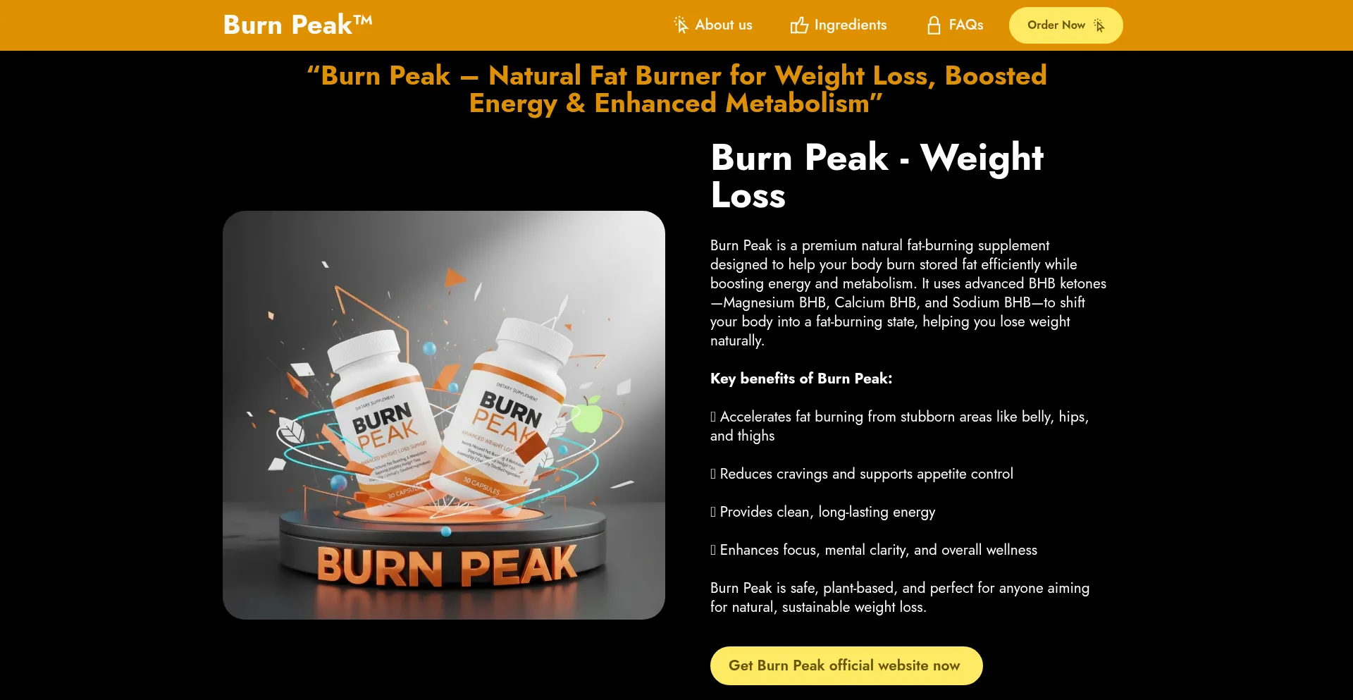 Burn Peak is a natural fat-burning supplement that boosts metabolism, curbs cravings, and supports effective weight loss. Order from the official site today!