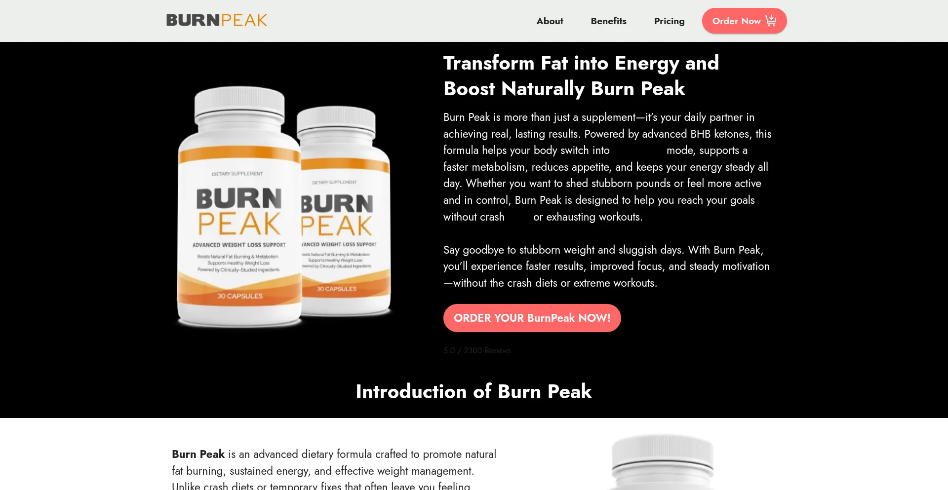 Burn peak is a premium, all-natural dietary supplement formulated to support healthy weight loss by working with your body’s own metabolic systems.