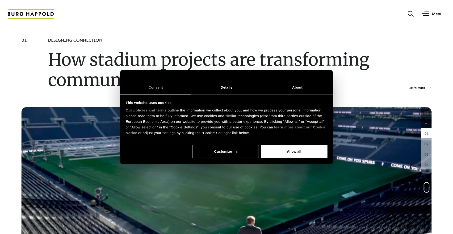 该网站实现符合GDPR或CCPA等隐私法规的cookie同意机制。这表明 burohappold.com 遵守数据保护标准并为用户提供对个人数据收集实践的控制。