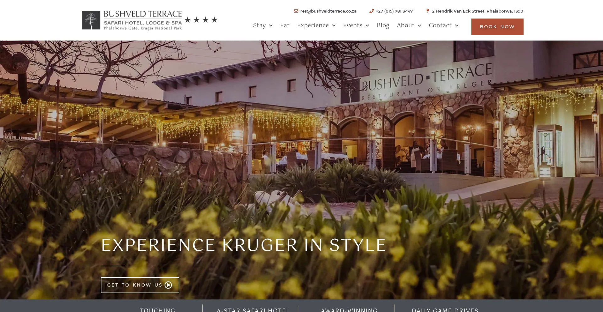Bushveld Terrace on Kruger is a 4-star hotel and restaurant in Phalaborwa. Our incredible location makes us Phalaborwa’s closest hotel to Kruger Park.