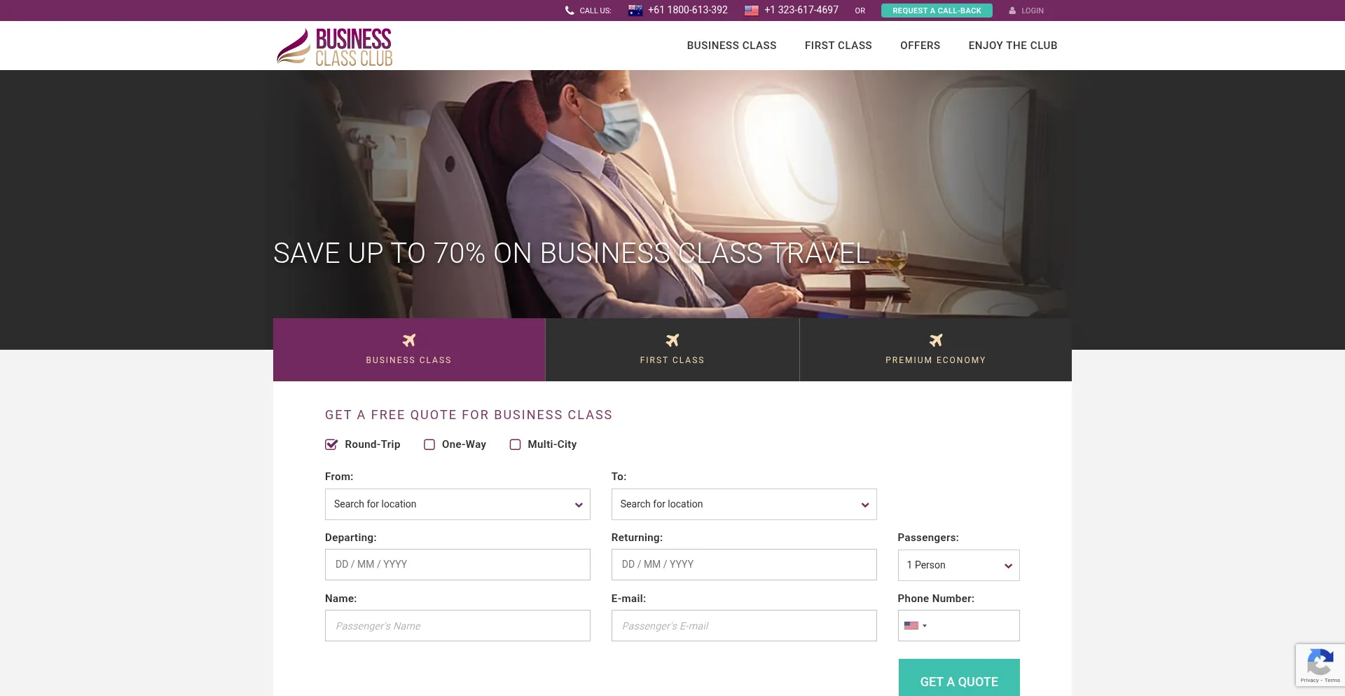 网站上存在社交媒体链接表明 businessclassclub.com 在社交媒体上维护官方账户,这是可信度和参与度的积极信号。