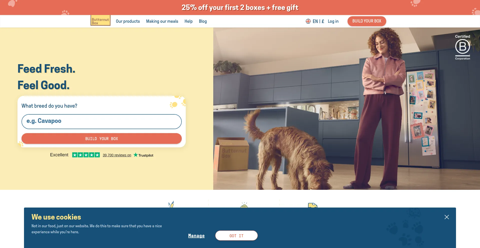 Butternut Box is a fresh dog food subscription. Our meals are healthy, delicious and hypoallergenic. Perfectly-portioned and delivered direct to your door.