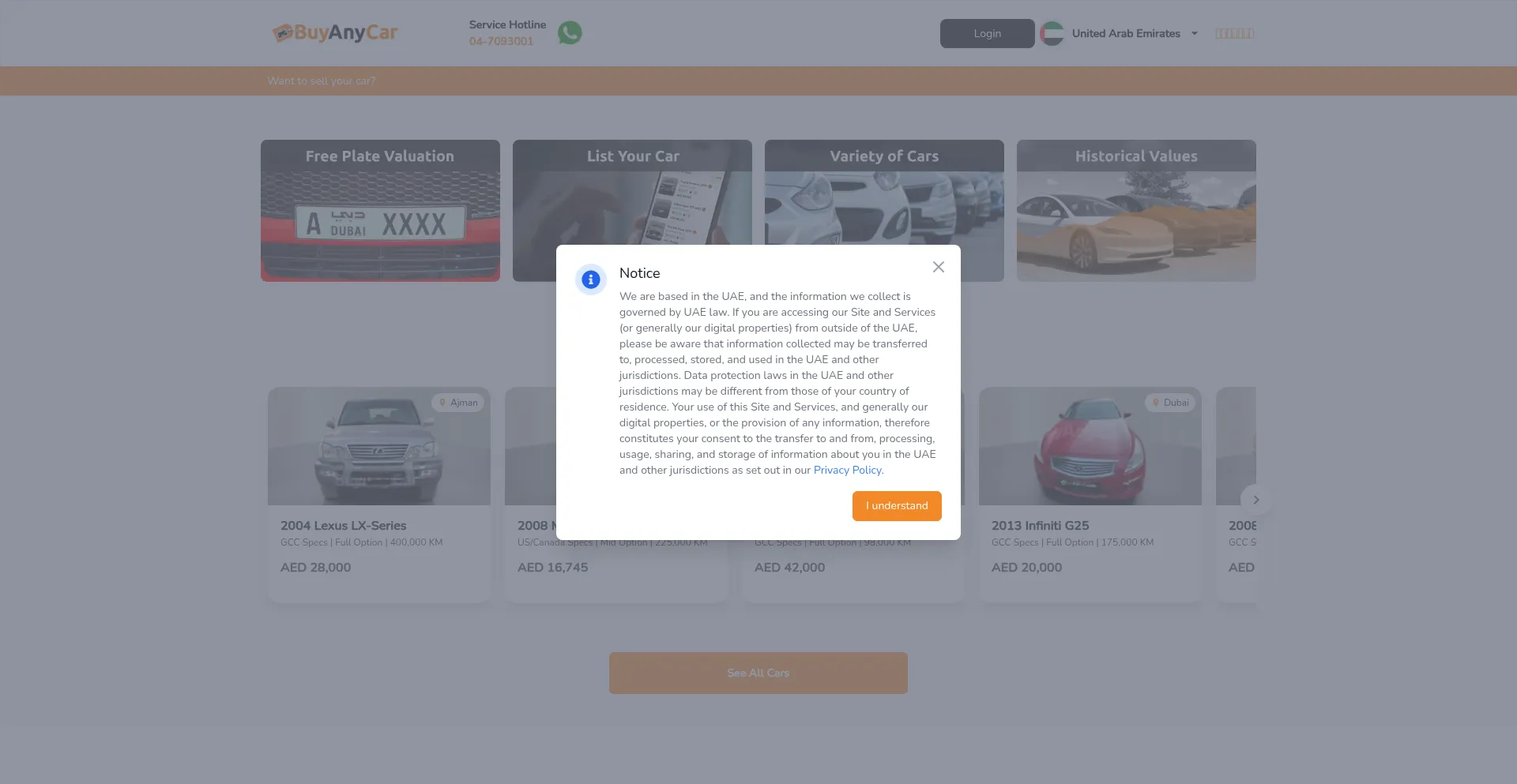 Buy or sell cars effortlessly on BuyAnyCar - UAE's first social car marketplace. Discover fair car Historical Values and even connect with owners directly.