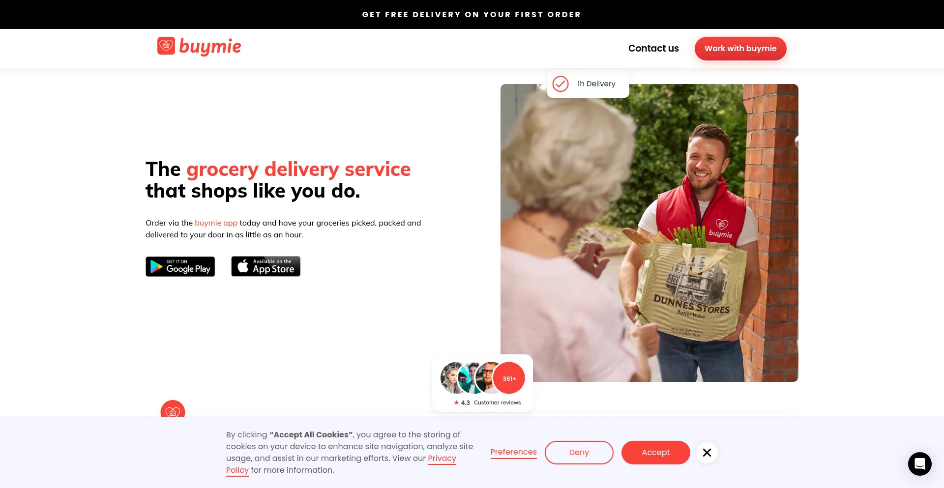 buymie.eu 拥有可用的 iOS 移动应用程序,表明为 Apple 设备用户提供跨平台可访问性。
