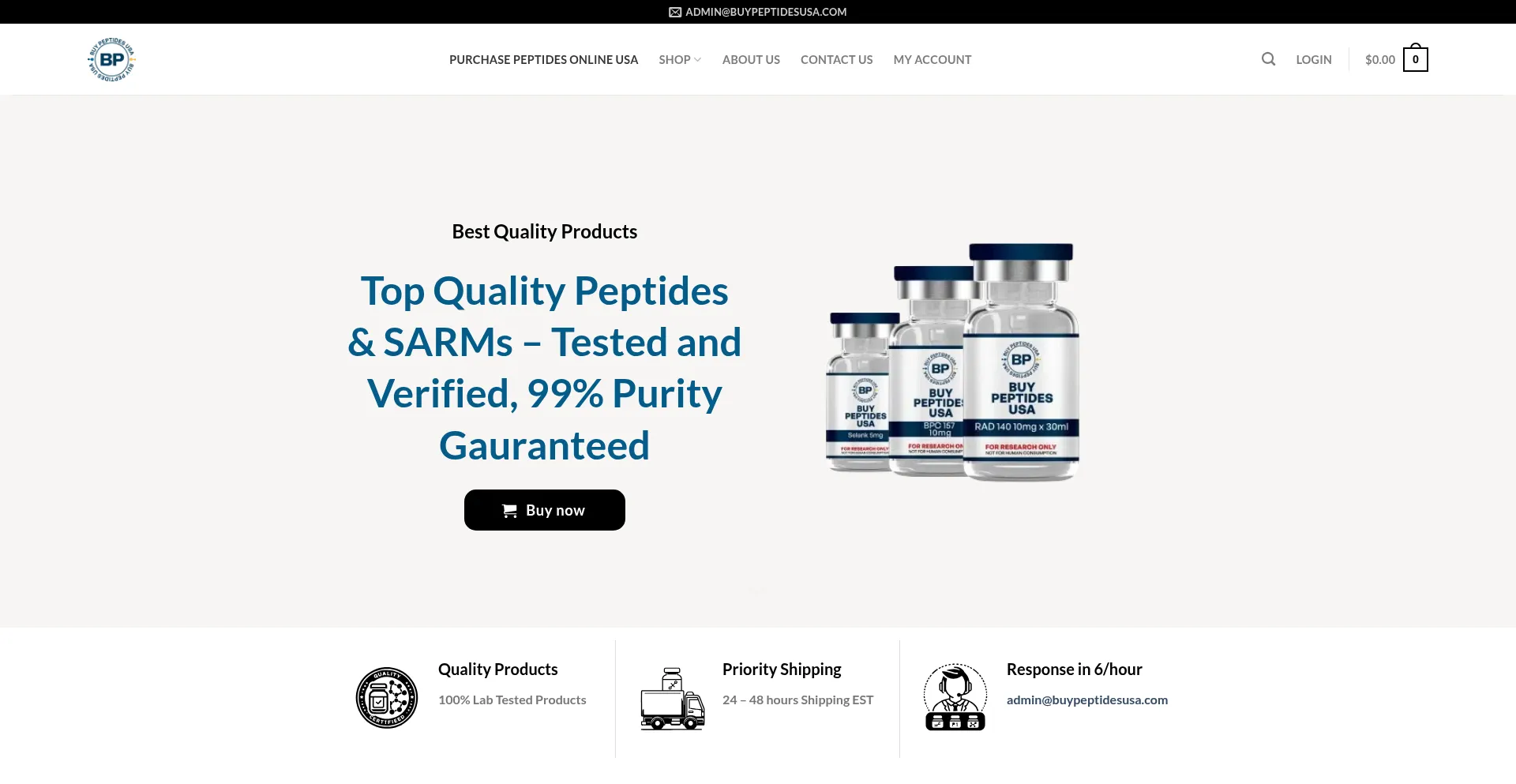 分析表明 buypeptidesusa.com 作为电子商务平台运营,促进商品或服务的在线交易。该网站实现了购物车功能、支付处理系统和产品目录功能,这些是商业零售运营的典型特征。