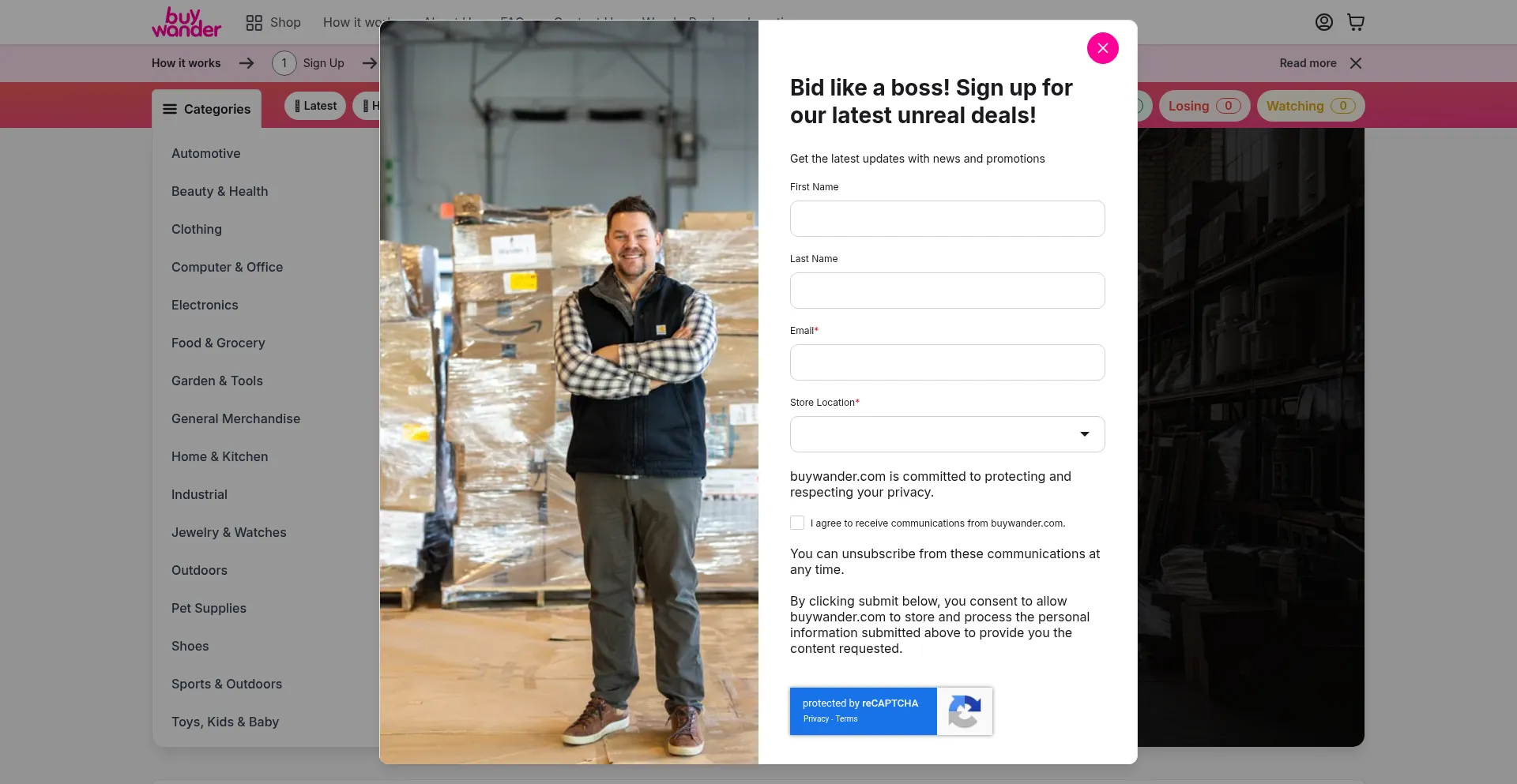 该网站实现数据收集表单,请求个人信息,包括姓名、电子邮件地址、电话号码或其他敏感详细信息。用户应验证 buywander.com 的合法性并在提交个人数据前查看隐私政策。