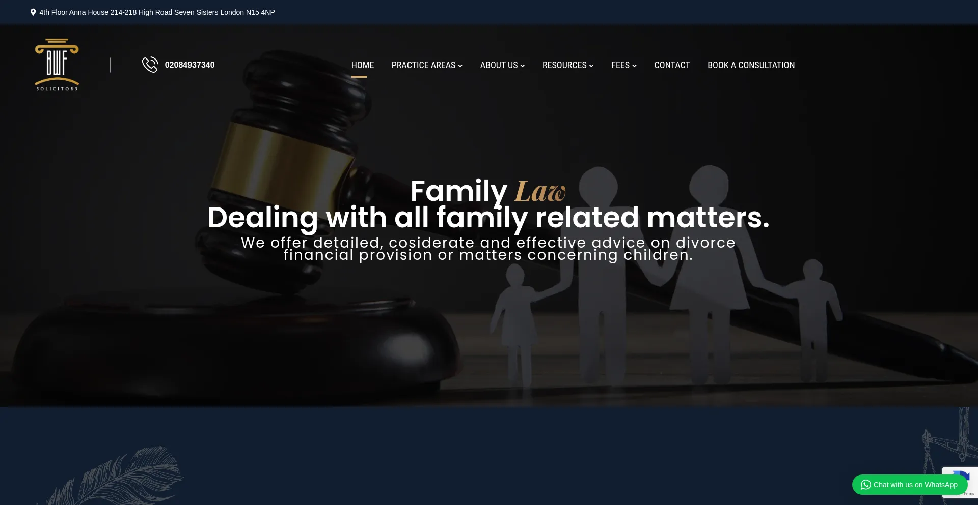 bwfsolicitors.com 使用 Bootstrap,这是一个广泛采用的开源响应式网页开发框架。Bootstrap 通过标准化组件和样式实现移动友好界面的高效创建。