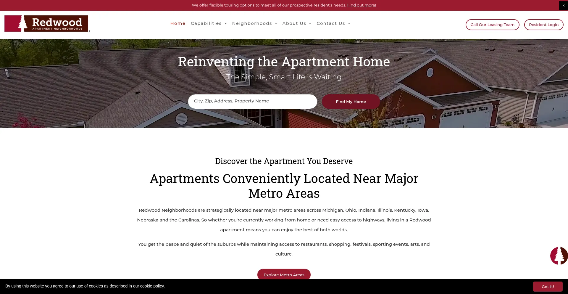 Discover Redwood Apartment Neighborhoods, where residents enjoy single-story pet friendly apartment rentals with an attached garage in a suburban setting.