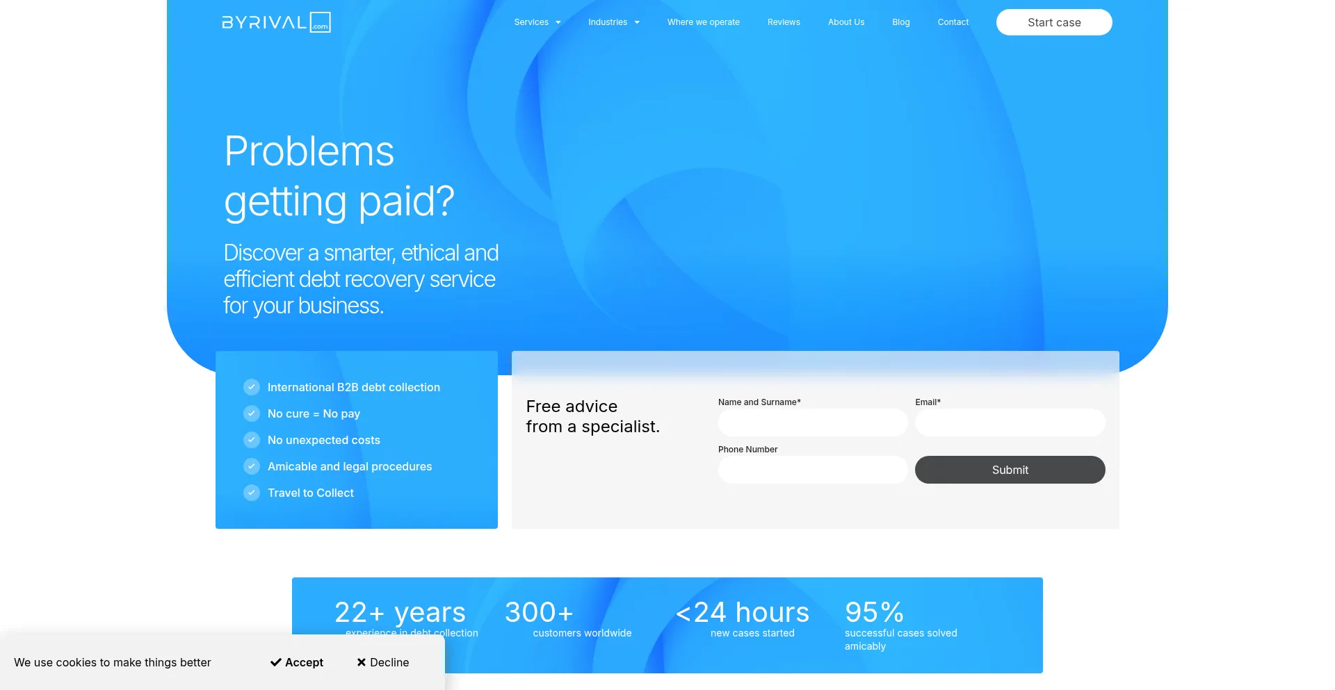 Streamline your debt collection process globally with Byrival, leading debt collection agency