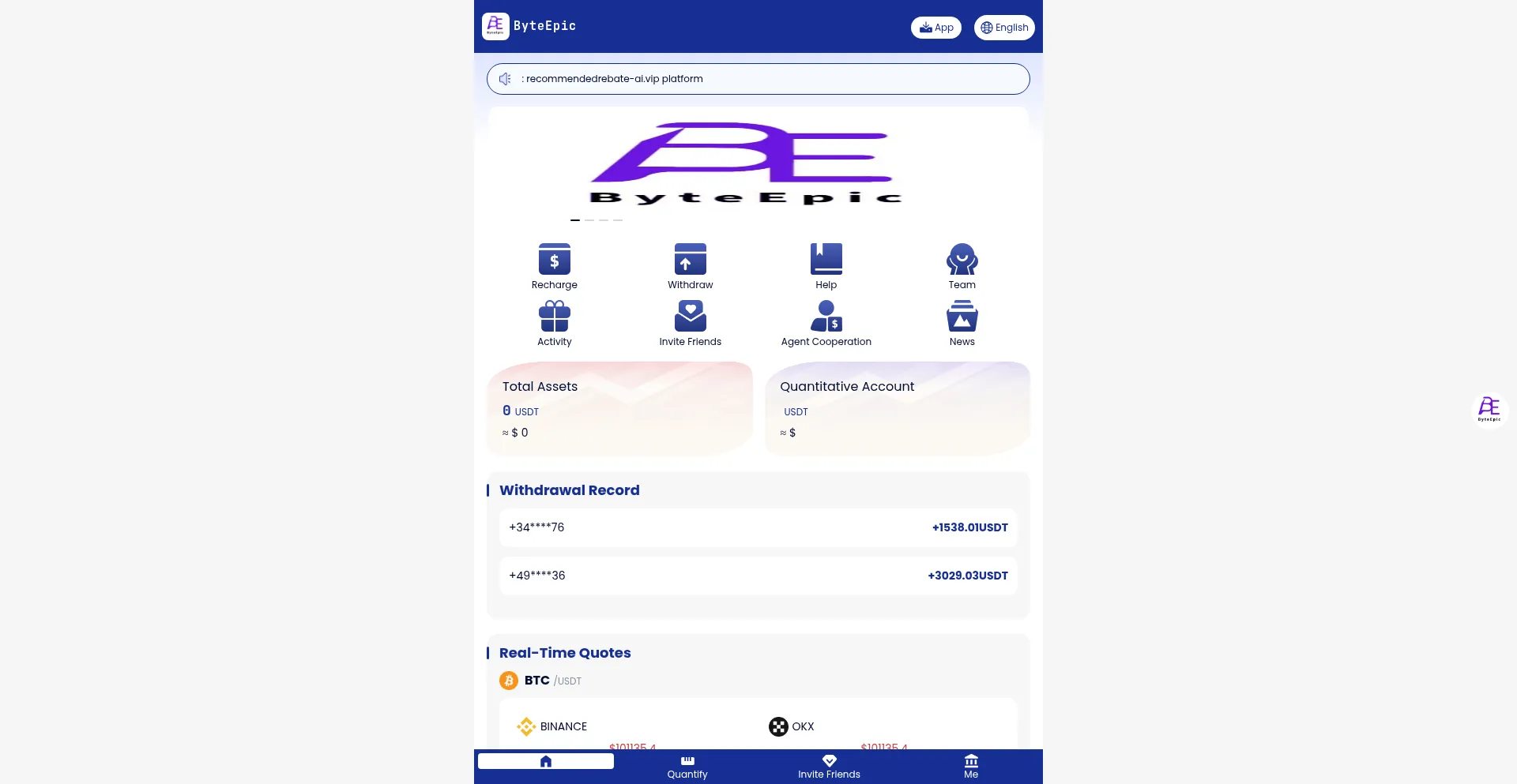 Byteepic.win 运营欺诈性金融平台,推广具有不现实回报承诺的欺骗性投资机会。安全分析表明该平台采用与 庞氏骗局 和预付费欺诈一致的策略,旨在提取用户资金和个人信息。