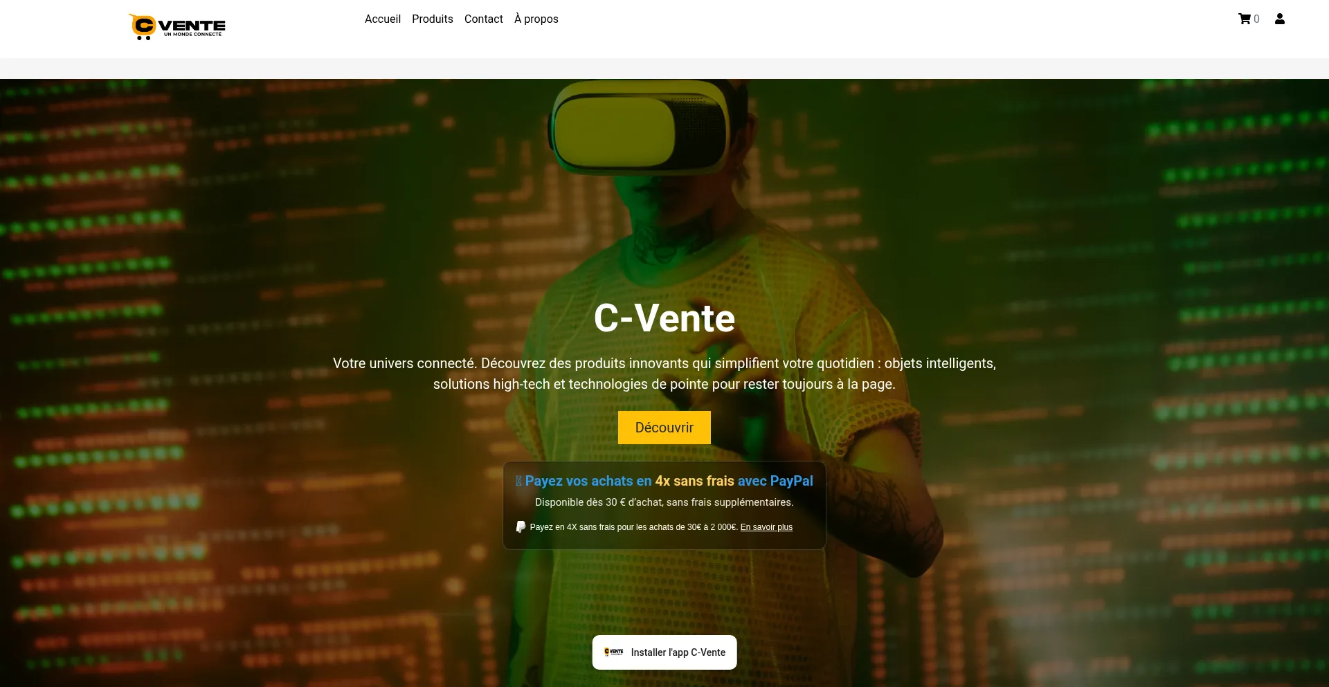 网站 c-vente.com 被配置为一个带有移动应用功能的网络应用。用户可以直接将该网站安装到设备的桌面上,以快速访问并享受类似移动应用的体验。