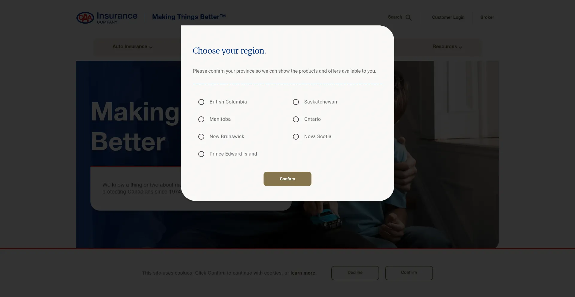 该网站实现数据收集表单,请求个人信息,包括姓名、电子邮件地址、电话号码或其他敏感详细信息。用户应验证 caainsurancecompany.ca 的合法性并在提交个人数据前查看隐私政策。