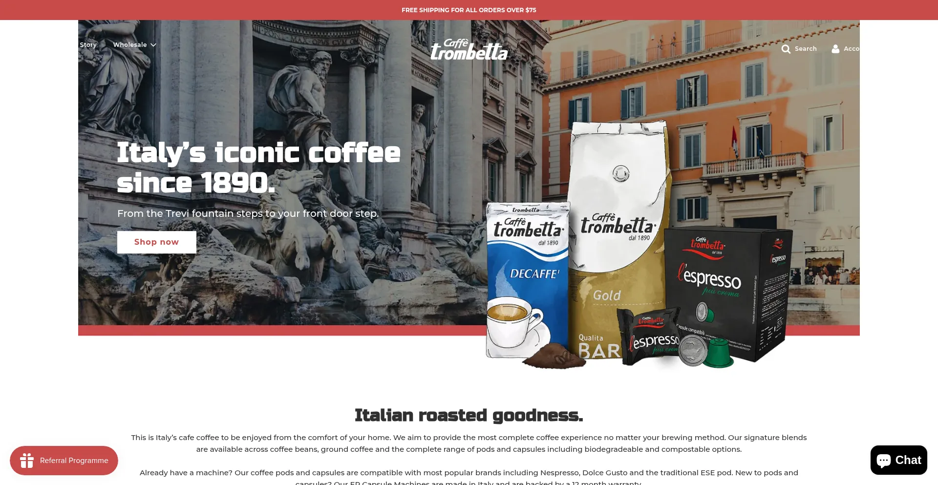 The freshest coffee beans, pods and capsules sealed and delivered to your door. Italy’s iconic coffee since 1890. Shop online today with Caffe Trombetta for quick delivery!