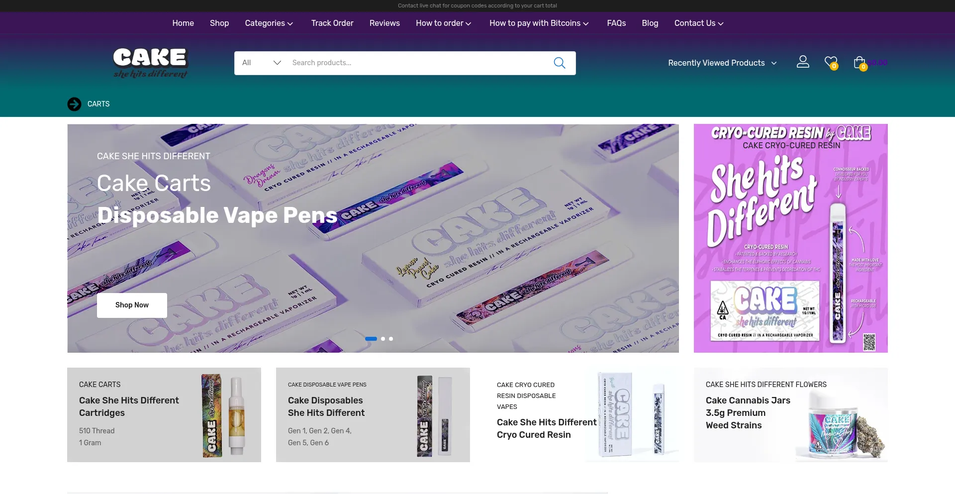 Cake Carts She hits different Disposable Vape Pens, Designer Distillate, Cannabis Flowers Jars, Concentrates...