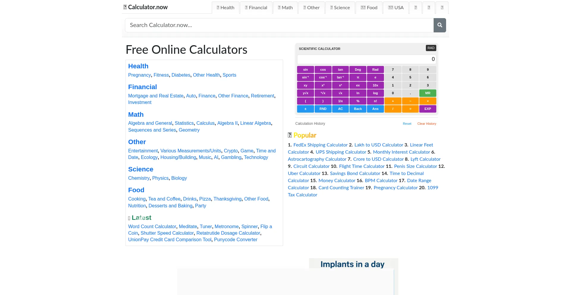 Wide range of useful online calculators at Calculator.now. Simplify your calculations with our easy-to-use calculators.