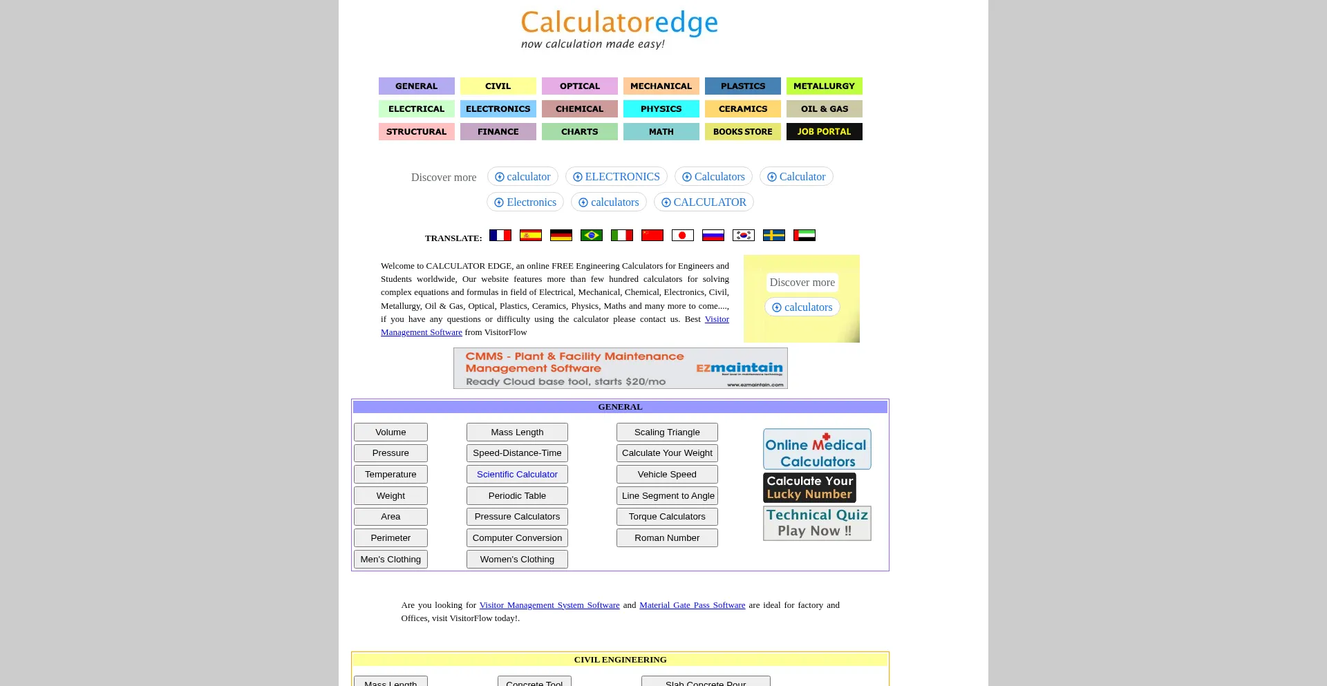 Free Online Calculators for Engineers - Electrical, Mechanical, Electronics, Chemical,Construction, Optical, Medical, Physics, etc...