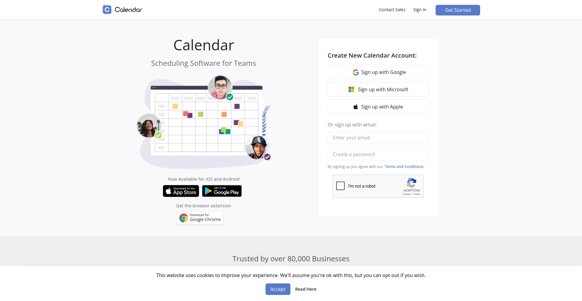 calendar.com 提供 Android 设备移动应用程序,表明平台存在已扩展到网络服务之外。