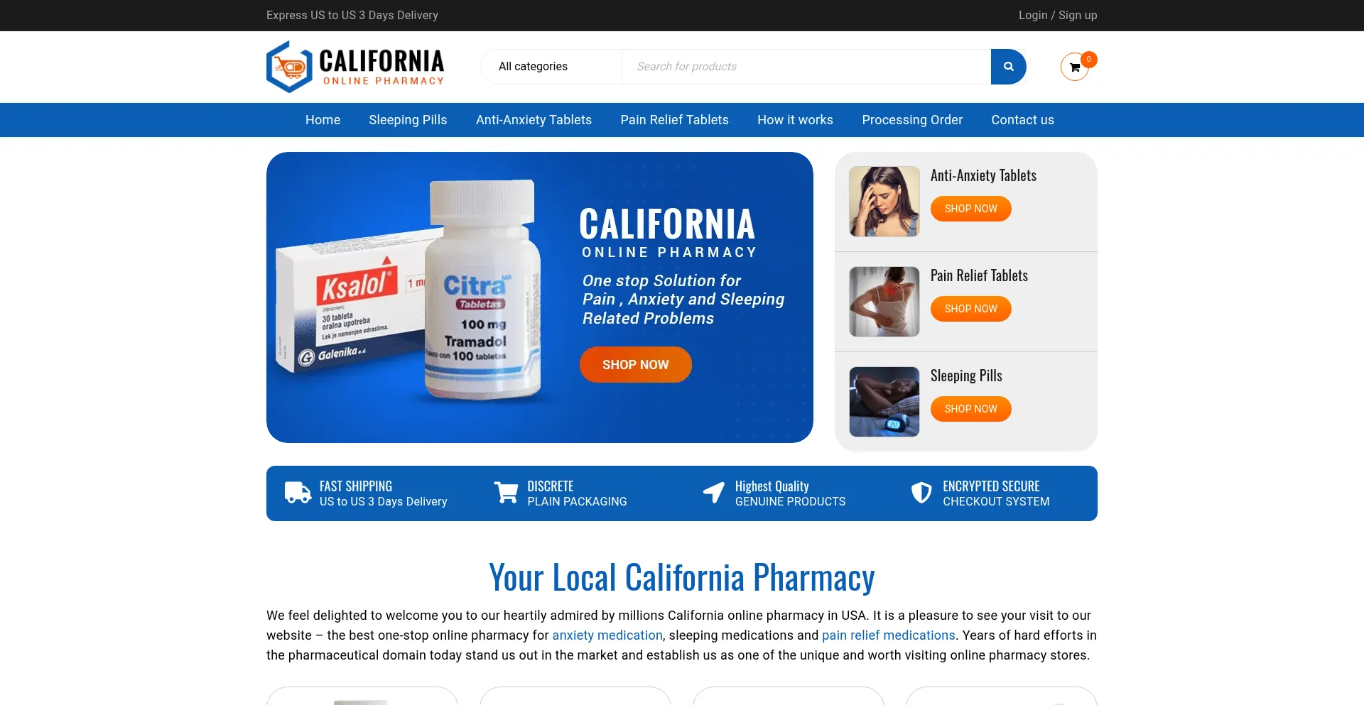 California Local Pharmacy For Painkillers, Anxiety & ED Medication