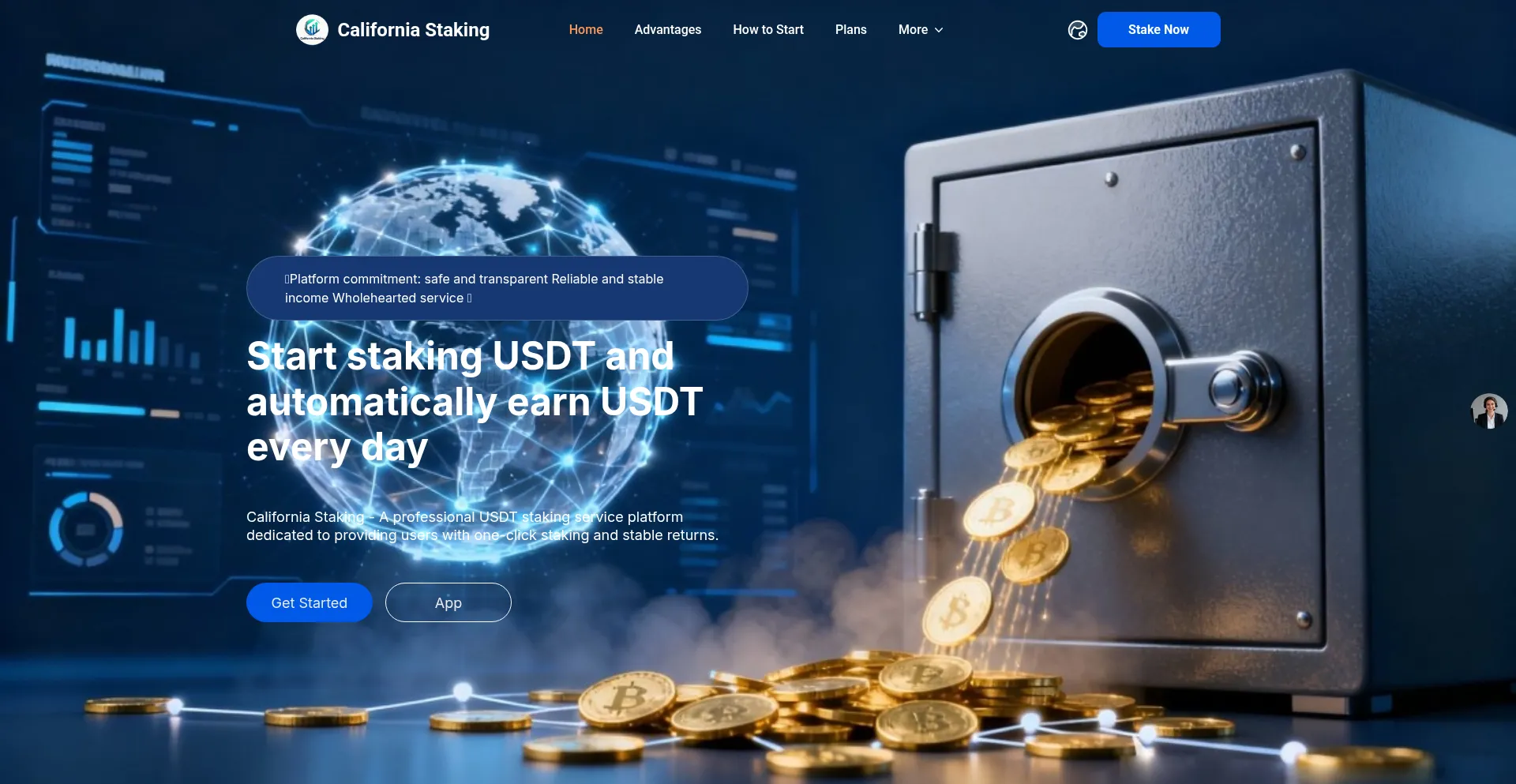 California Staking - A professional USDT staking service platform dedicated to providing users with one-click staking and stable returns.