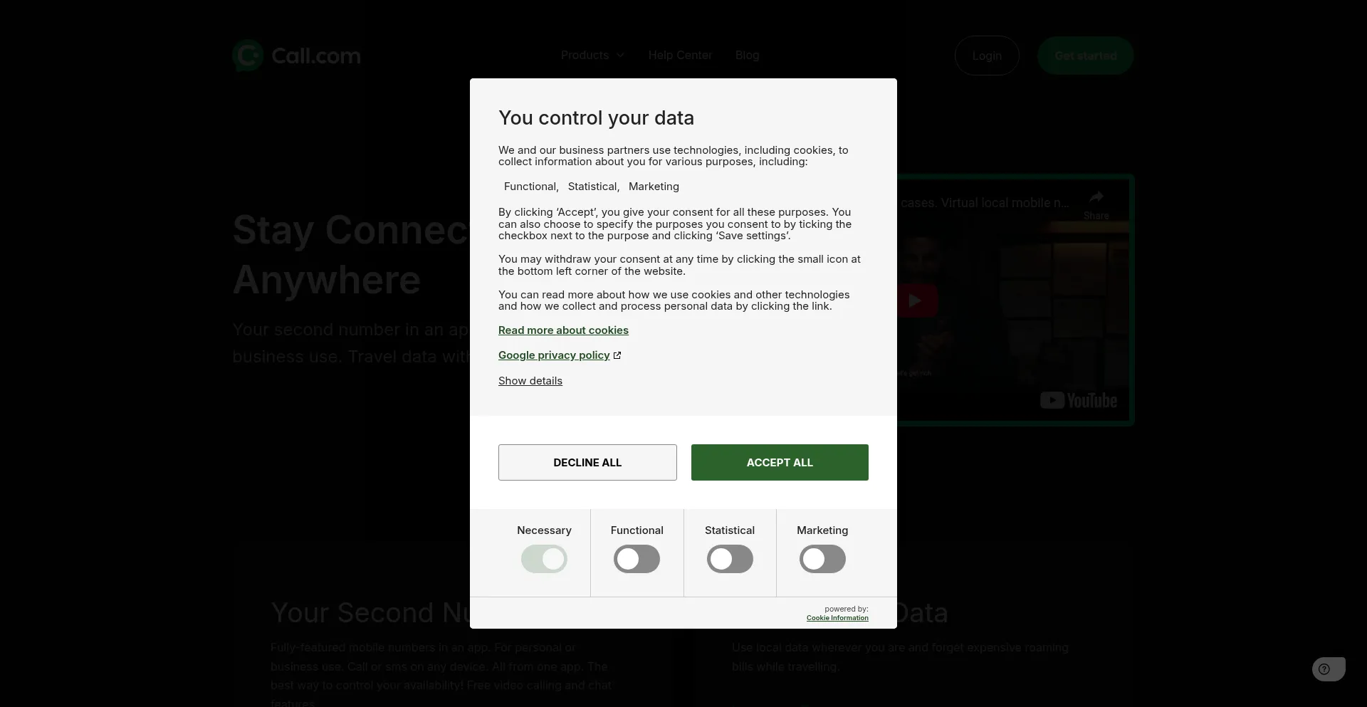 该网站实现符合GDPR或CCPA等隐私法规的cookie同意机制。这表明 call.com 遵守数据保护标准并为用户提供对个人数据收集实践的控制。
