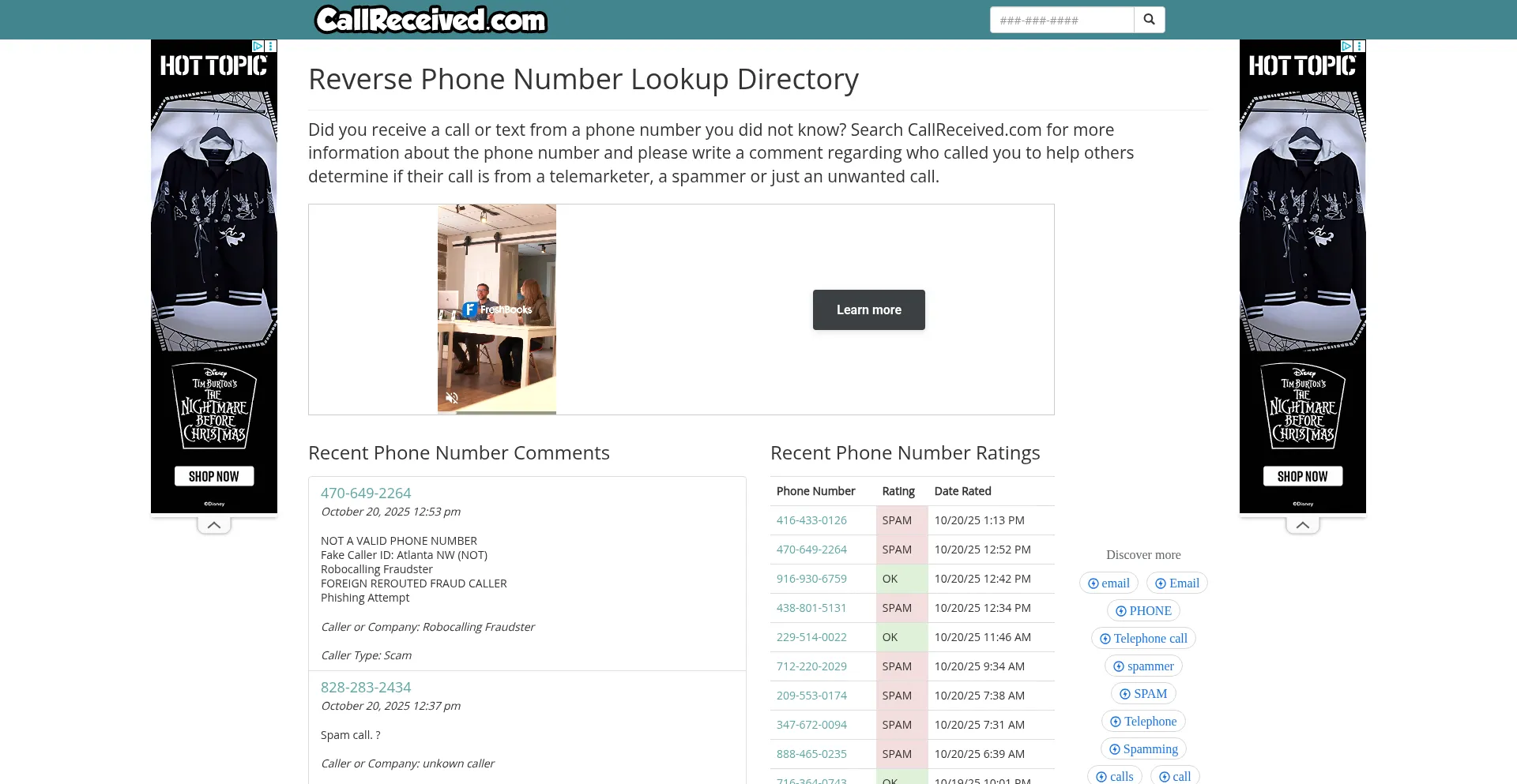 Free Reverse Phone Number Lookup Directory - CallReceived.com
