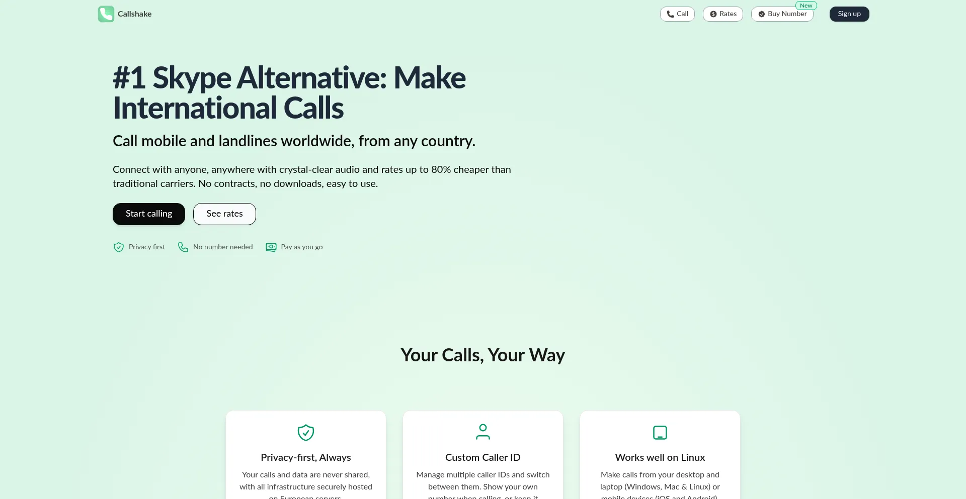 Call mobile and landlines worldwide with crystal-clear audio and rates up to 80% cheaper than traditional carriers.