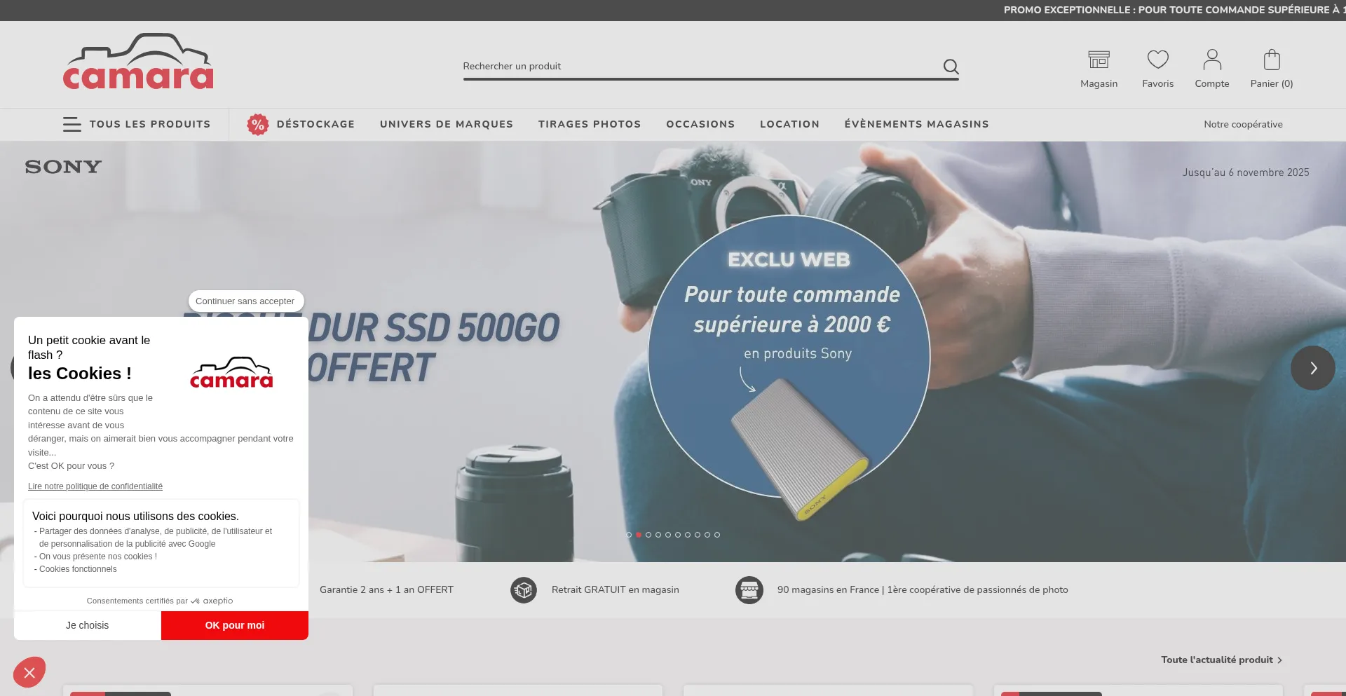 Votre spécialiste photo, plus de 10000 références disponibles en ligne. Commandez en ligne avant 17h, Livraison gratuite le lendemain dans votre magasin Camara.