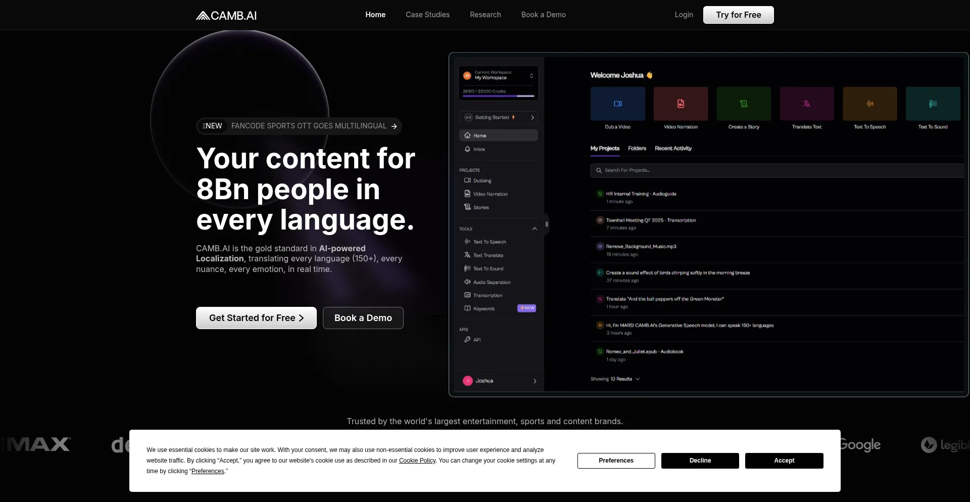 CAMB.AI: Gold standard AI-powered localization in 150+ languages. Trusted by IMAX, Australian Open & Major League Soccer. Book demo!