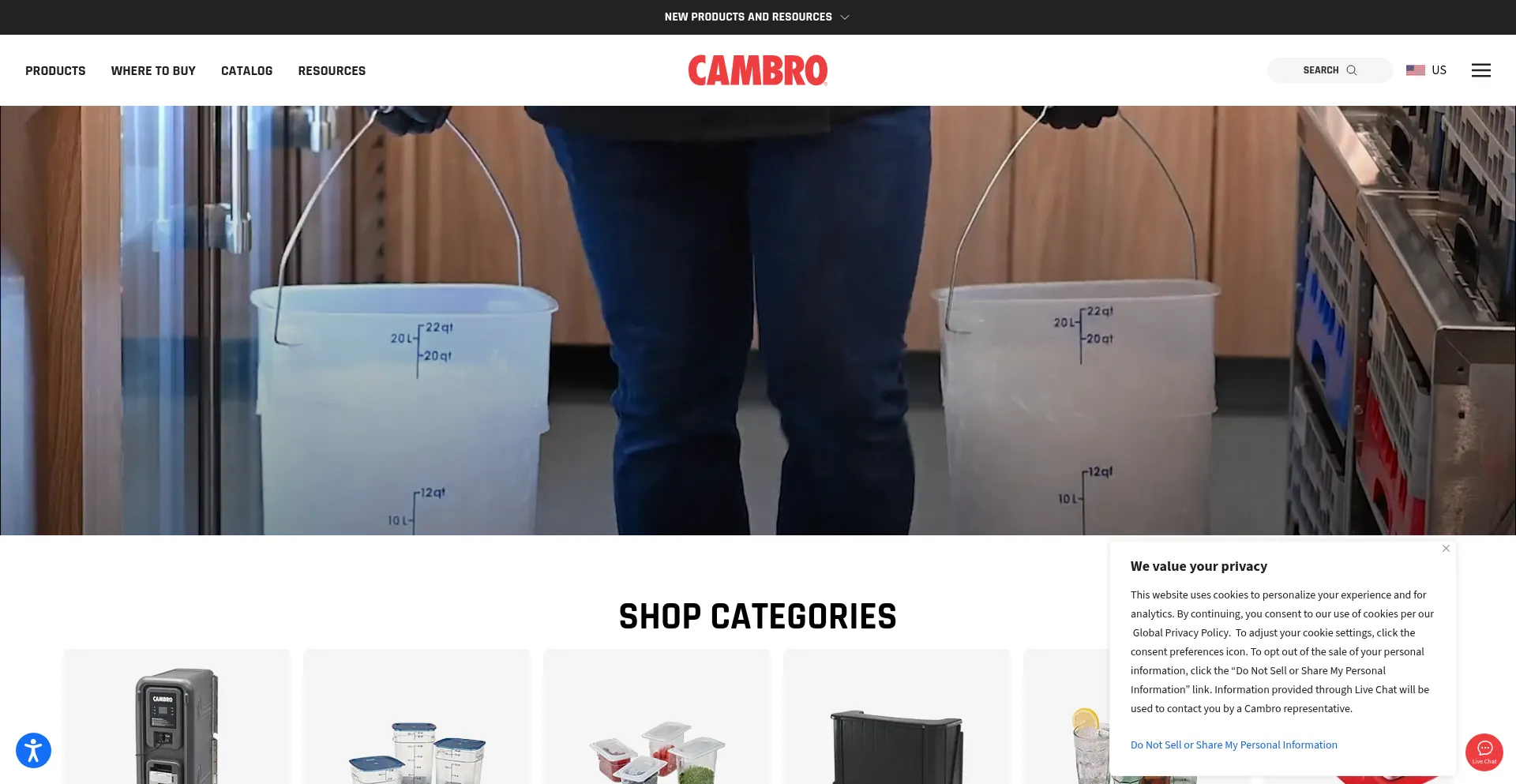 该网站实现符合GDPR或CCPA等隐私法规的cookie同意机制。这表明 cambro.com 遵守数据保护标准并为用户提供对个人数据收集实践的控制。
