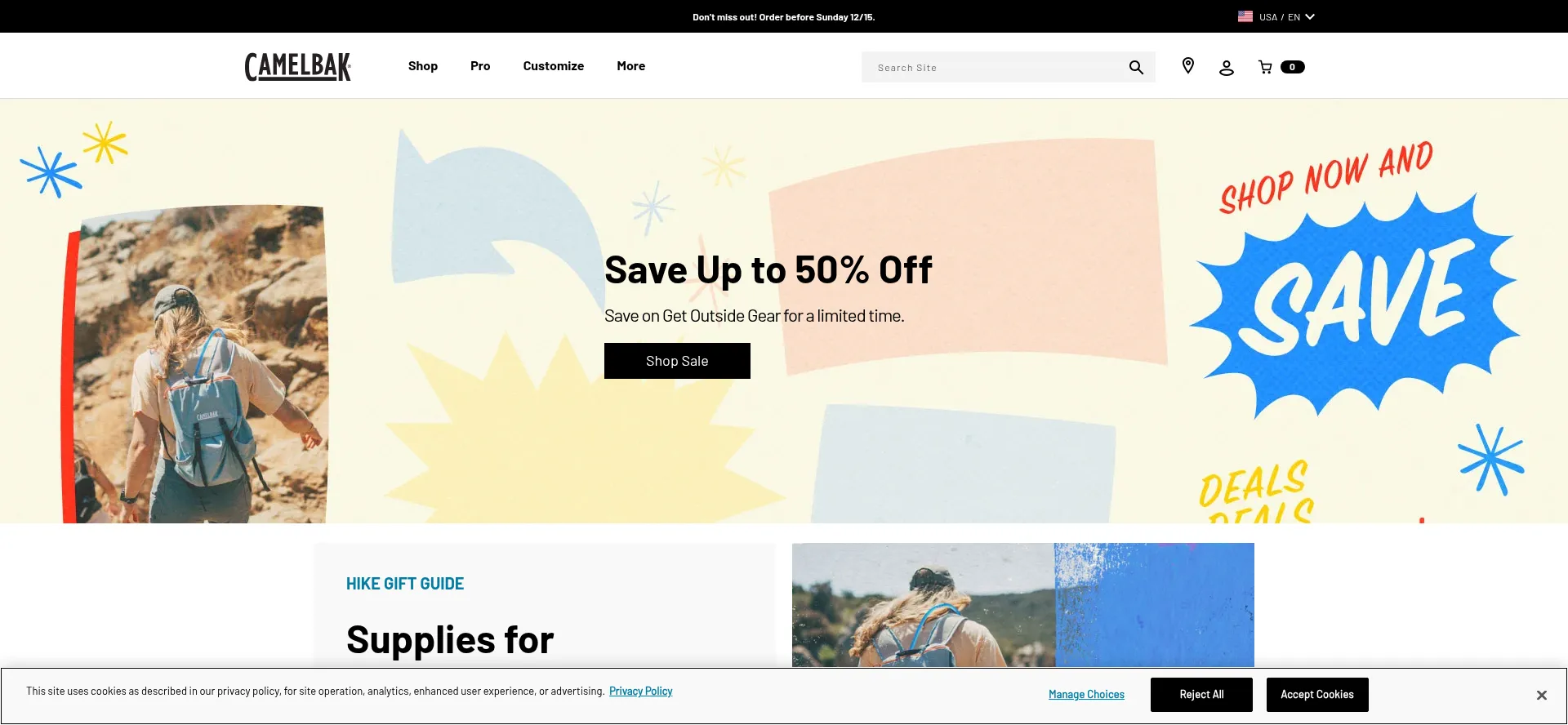 该网站实现符合GDPR或CCPA等隐私法规的cookie同意机制。这表明 camelbak.com 遵守数据保护标准并为用户提供对个人数据收集实践的控制。