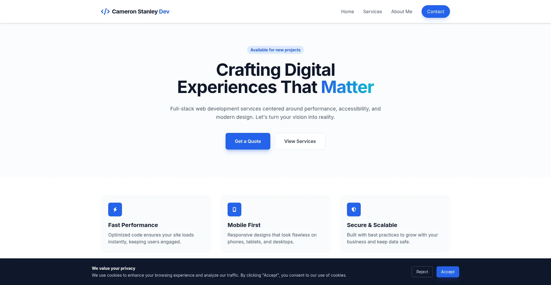 Full-stack web development services centered around performance, accessibility, and modern design.