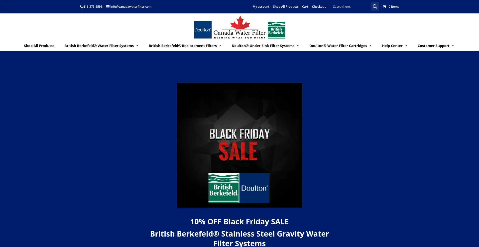 Discover premium British Berkefeld® Gravity Systems and Doulton® Under Sink water filter systems in Canada. Enjoy clean, safe drinking water with NSF-certified gravity and und...