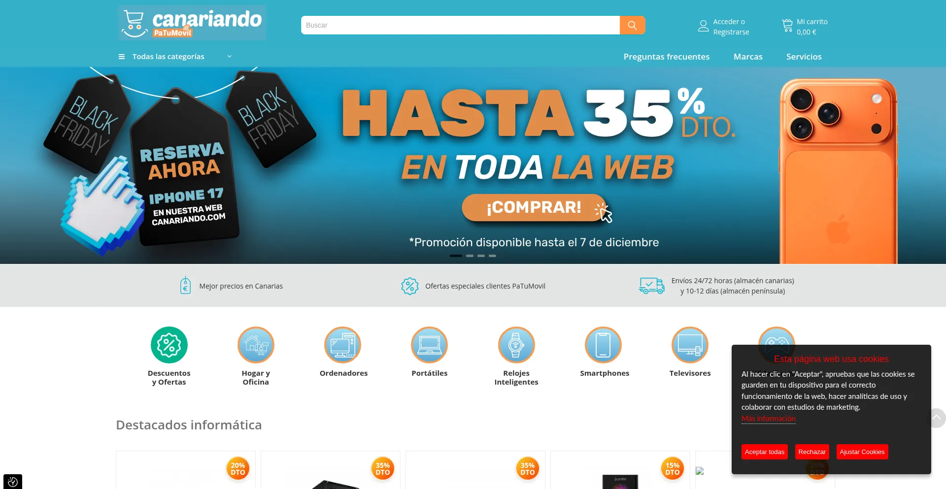 canariando.com 使用 Google Tag Manager 在其网站上添加和更新追踪代码(标签)。