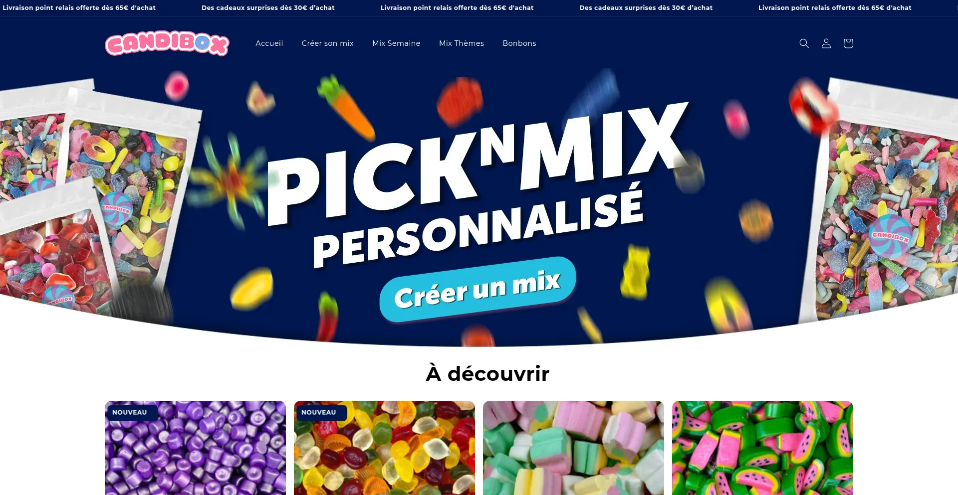 Achetez vos bonbons en ligne avec Candibox : bonbons en vrac pas chers, mix personnalisés et assortiments thématiques pour mariages, anniversaires et fêtes.