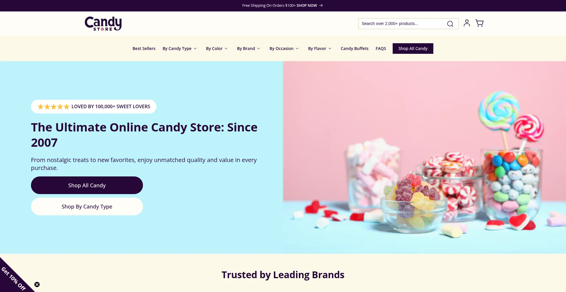 The largest online candy store offering an unmatched variety of over 6500 candies. Shop the best candy shop selection at CandyStore.com and enjoy flat rate shipping!