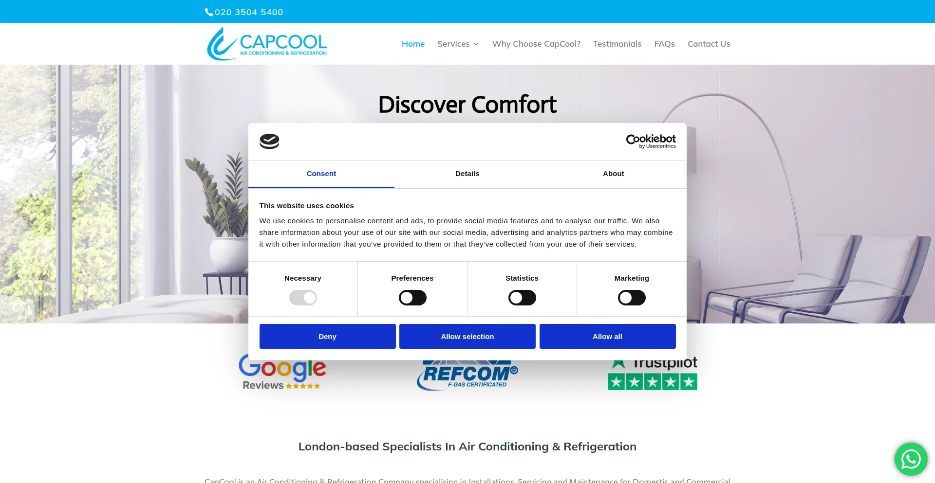 该网站实现符合GDPR或CCPA等隐私法规的cookie同意机制。这表明 capcool.co.uk 遵守数据保护标准并为用户提供对个人数据收集实践的控制。