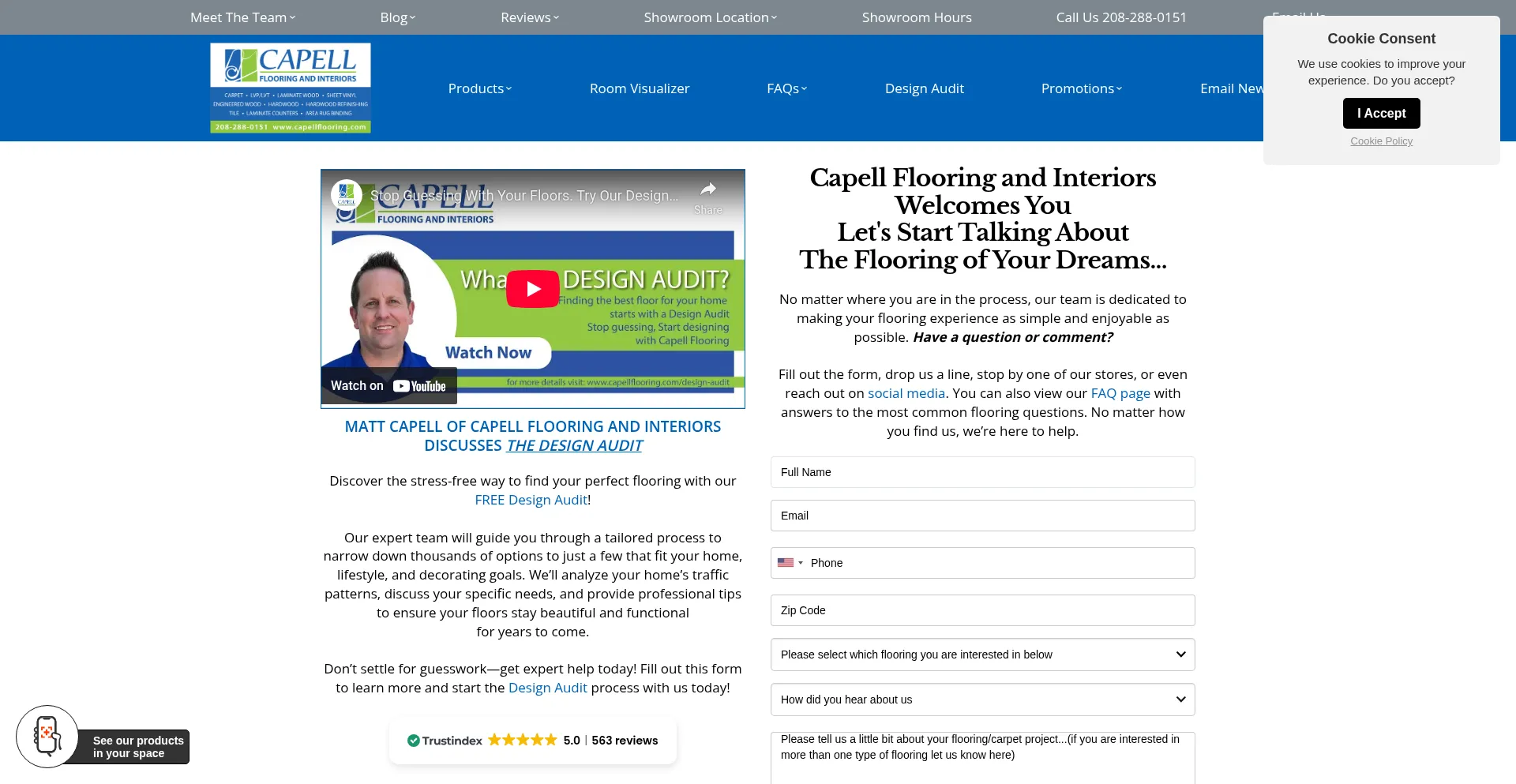 该网站实现符合GDPR或CCPA等隐私法规的cookie同意机制。这表明 capellflooring.com 遵守数据保护标准并为用户提供对个人数据收集实践的控制。