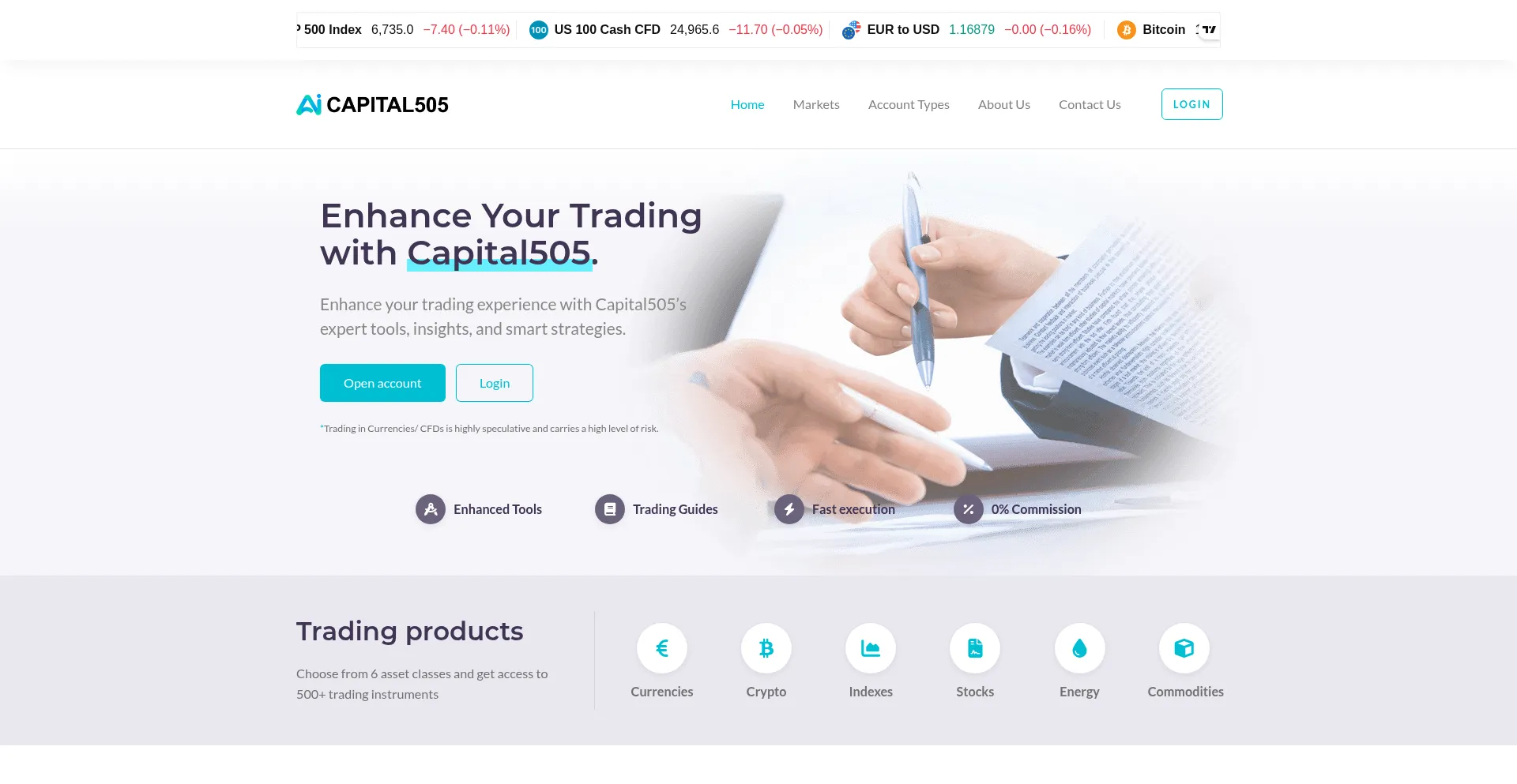 该网站实现数据收集表单,请求个人信息,包括姓名、电子邮件地址、电话号码或其他敏感详细信息。用户应验证 capital505.com 的合法性并在提交个人数据前查看隐私政策。