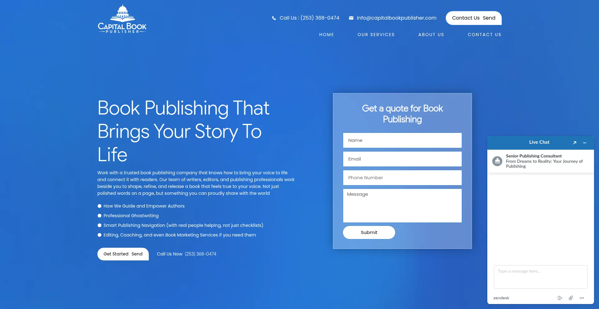 该网站实现数据收集表单,请求个人信息,包括姓名、电子邮件地址、电话号码或其他敏感详细信息。用户应验证 capitalbookpublisher.com 的合法性并在提交个人数据前查看隐私政策。