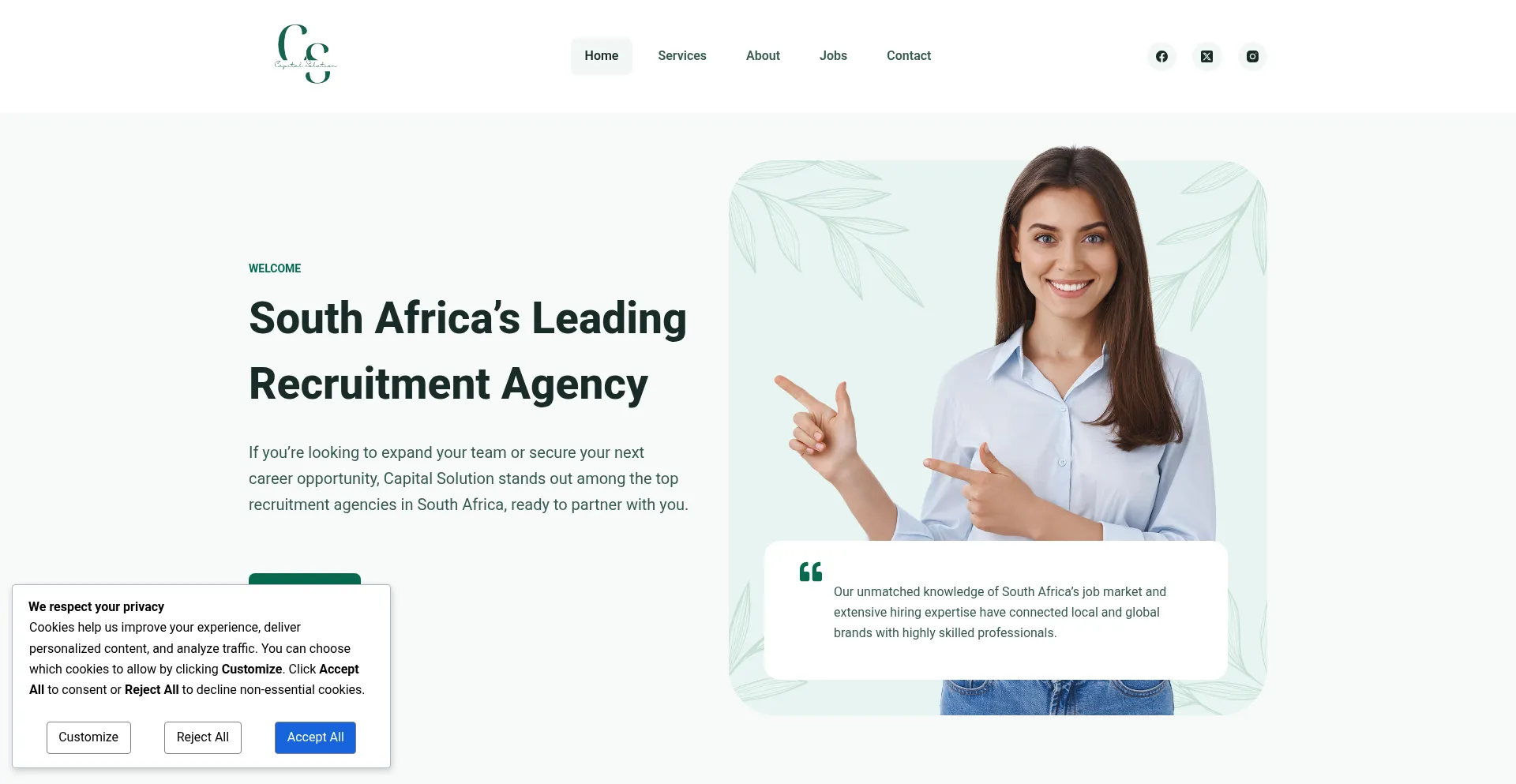 该网站实现符合GDPR或CCPA等隐私法规的cookie同意机制。这表明 capitolsolution.co.za 遵守数据保护标准并为用户提供对个人数据收集实践的控制。