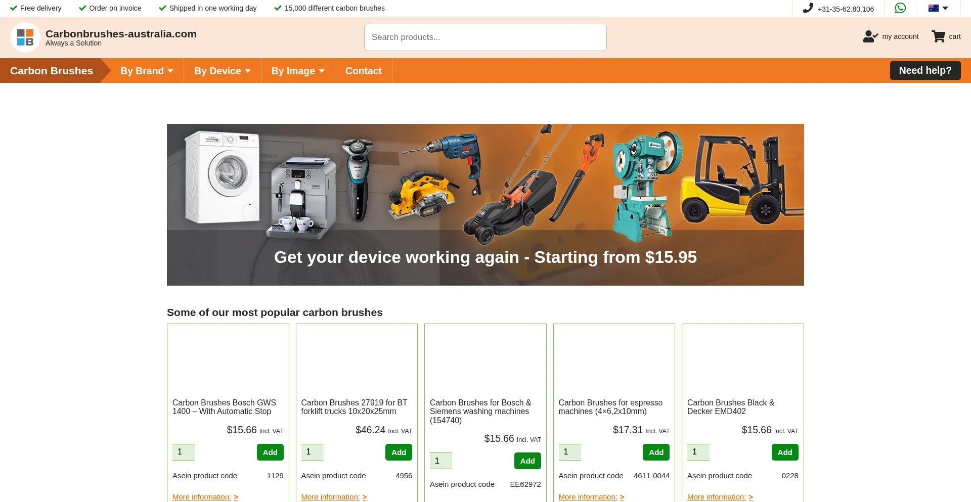 Carbonbrushes-australia.com - Always a solution - Free Worldwide Delivery