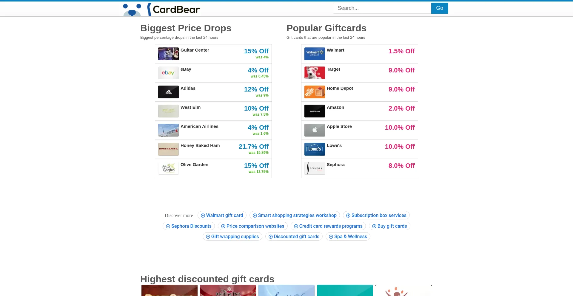 Get the highest discount on your gift card purchase. We compare top giftcard resellers to determine the lowest price.
