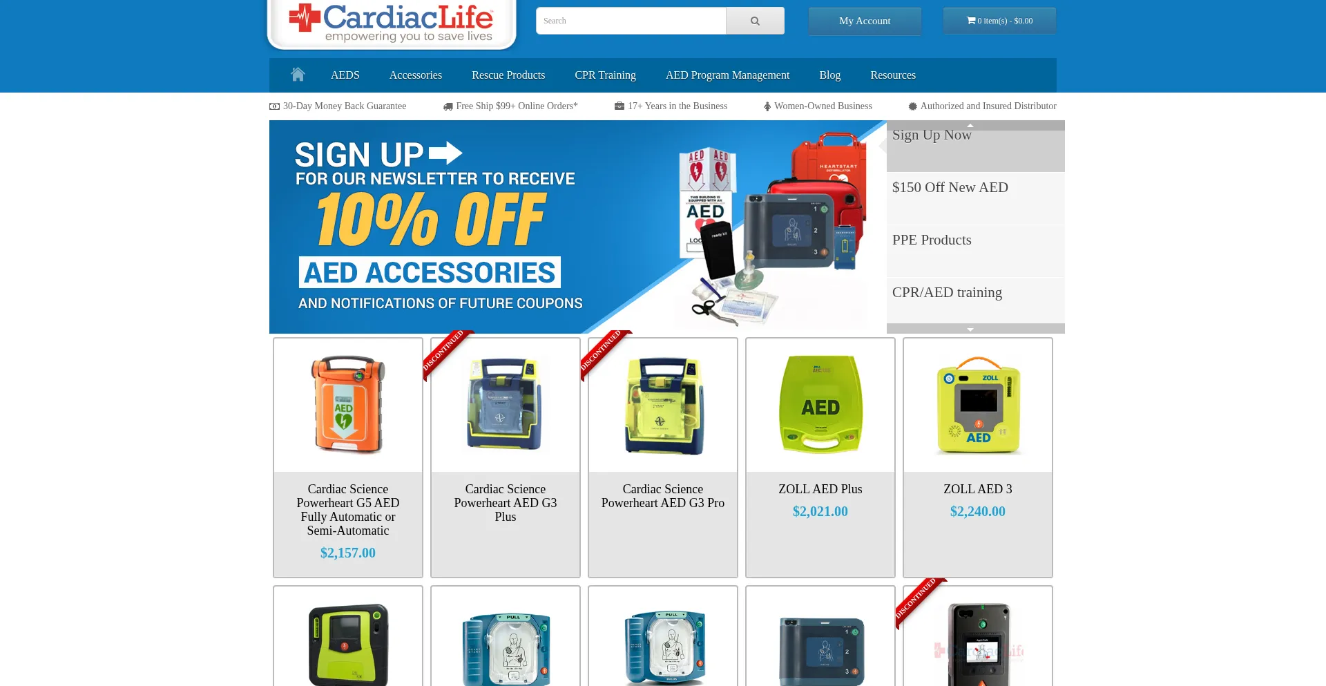 Shop Automated External Defibrillator brands ( a lightweight, portable device that delivers an electric shock to the chest and the heart) and AED accessories at Cardiac Life. C...