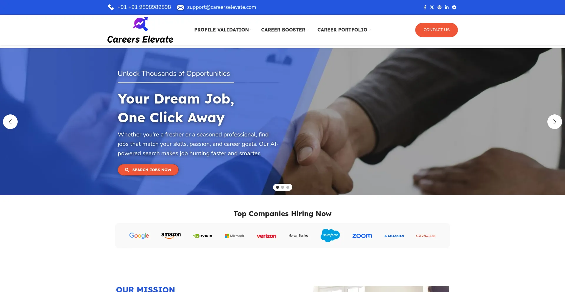 网站上存在社交媒体链接表明 careerselevate.com 在社交媒体上维护官方账户,这是可信度和参与度的积极信号。
