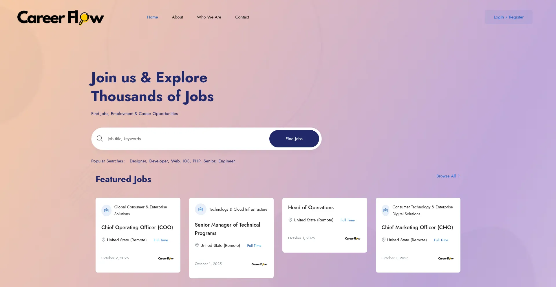 careersflowrecruit.com 使用 Bootstrap,这是一个广泛采用的开源响应式网页开发框架。Bootstrap 通过标准化组件和样式实现移动友好界面的高效创建。