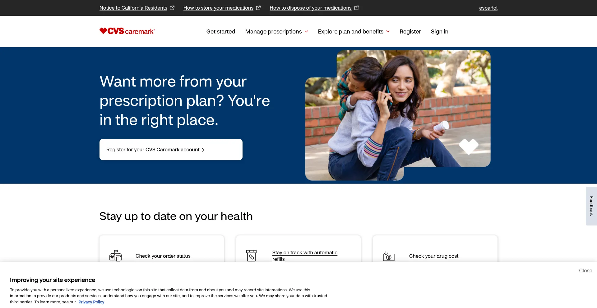 该网站实现符合GDPR或CCPA等隐私法规的cookie同意机制。这表明 caremark.com 遵守数据保护标准并为用户提供对个人数据收集实践的控制。